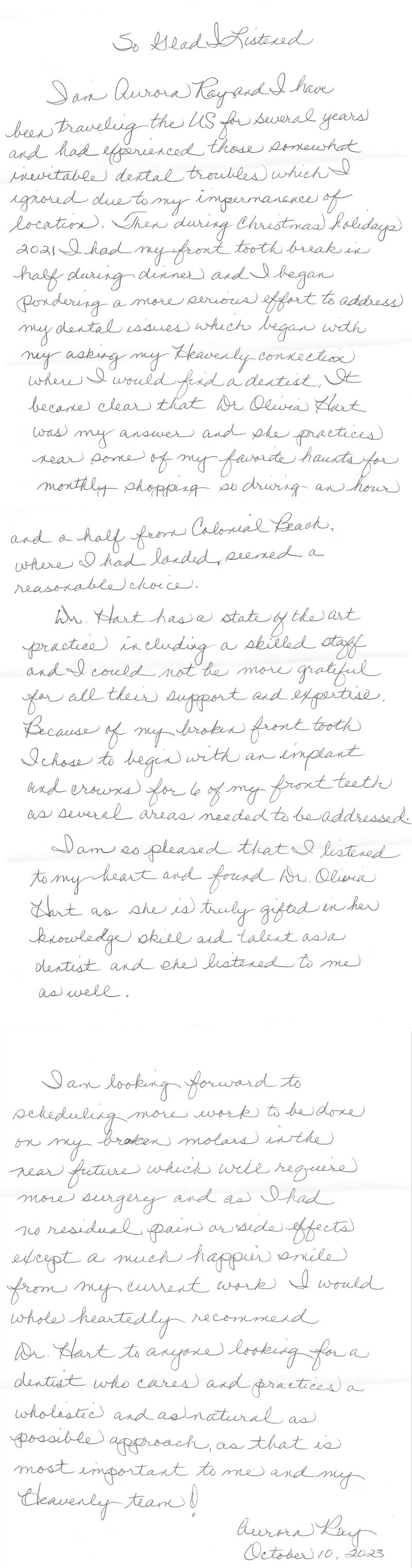 holistic dentist. I am impressed with the depth of her knowledge and understanding about the critically